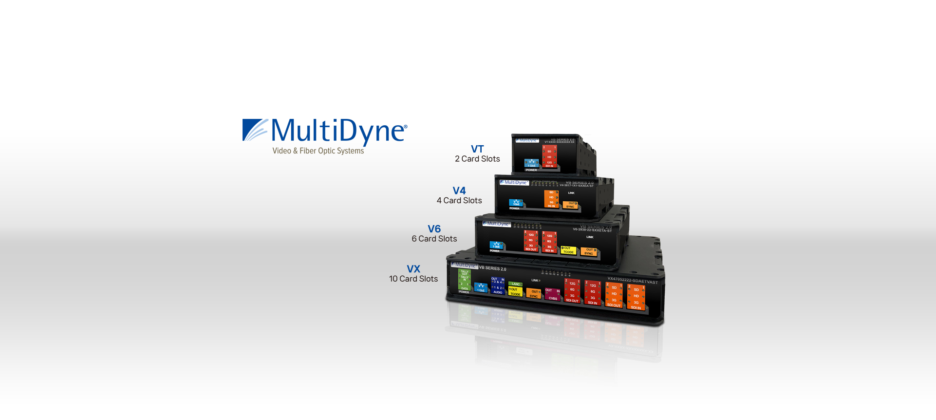 MultiDyne사는 지난 30년 이상 동안 카메라 송수신에서부터 HD-SDI, Audio, Data 광전송시스템, 소형 신호컨버터, 4K/UHD에 이르기까지 Video & Fiber-Optic 시스템 솔루션을 제공하고 있습니다.